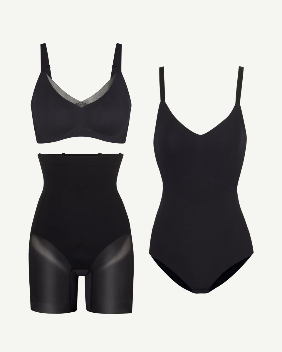 Extends below the bust for added coverage and support.
