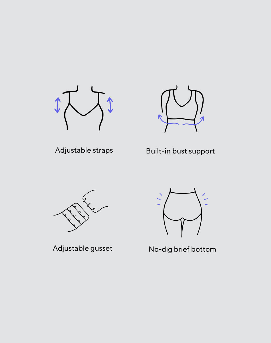 This shapewear bodysuit features adjustable straps. a built-in bra. and targeted X compression with doubleknit panels. Bonded back panels provide extra smoothing for 360° support. A hook and eye at the gusset lets you modify torso length and makes bathroom trips hassle-free. Silicone gripper gently holds the brief in place to prevent wedgies.