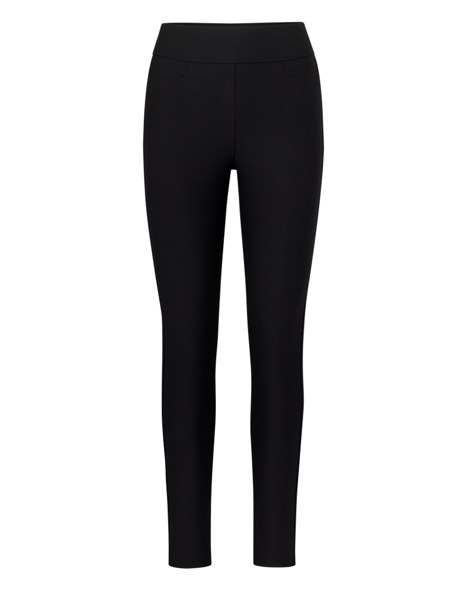 Interior shaping panels sculpt your tummy. hips. and booty. Wrinkle-proof twill ponte fabric smooths and conceals. Perfectly placed back pockets enhance your shape. 29.38 inseam.