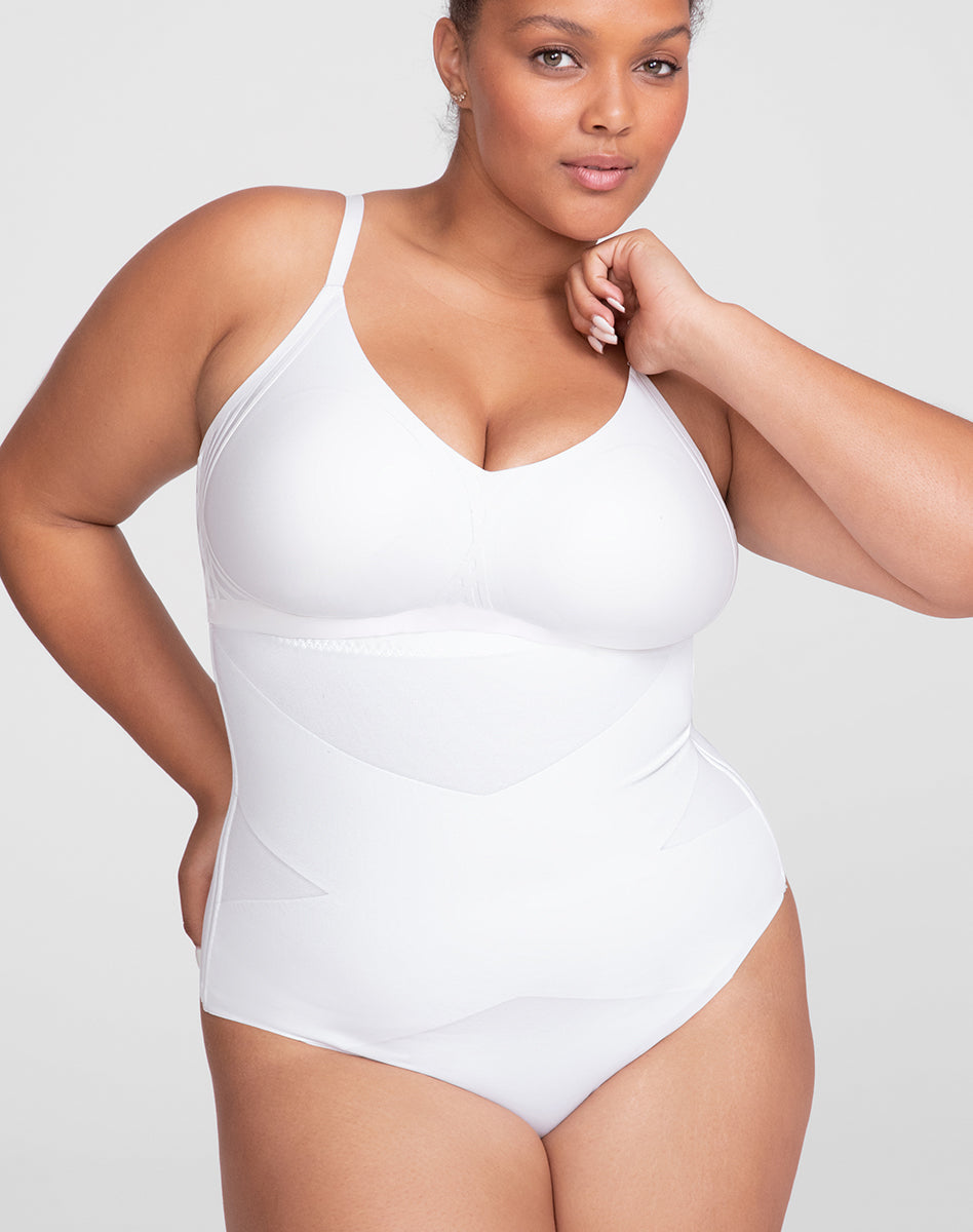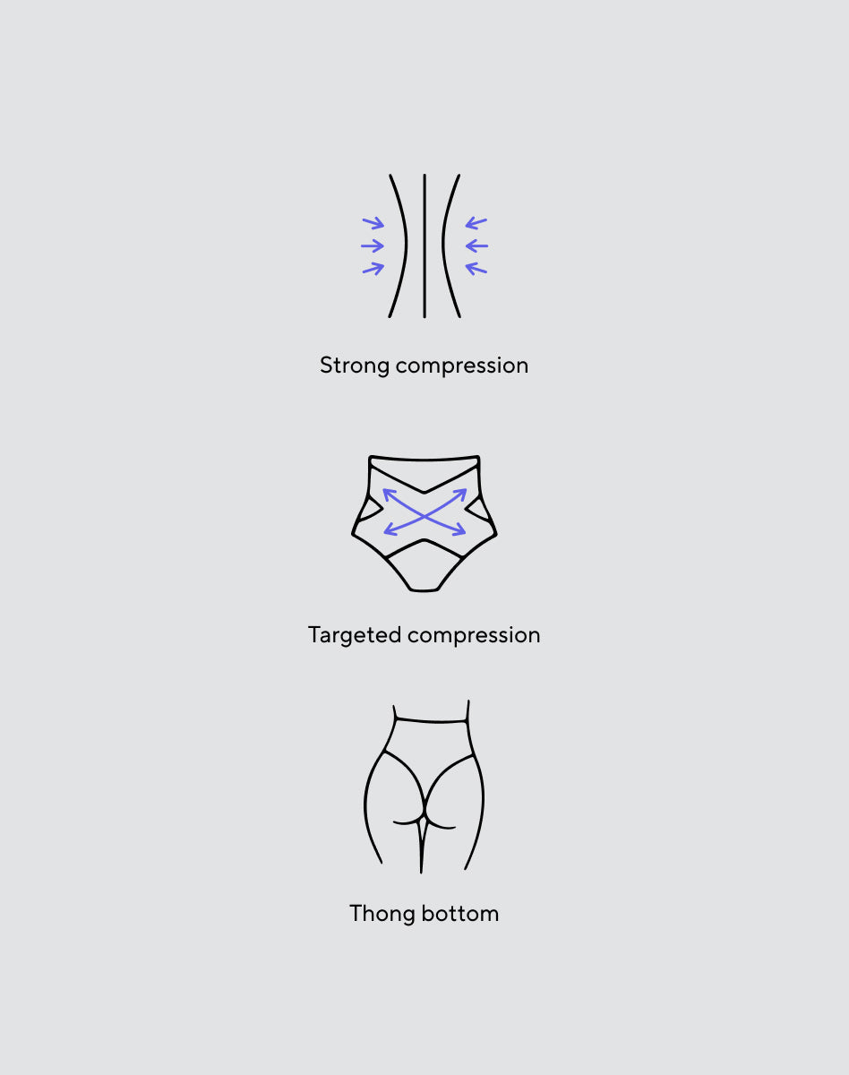 All the core-sculpting benefits of our targeted X compression with a zero percent chance of panty lines. Featuring hidden boning to define your waist and prevent rolling so you can move freely. A comfortable thong bottom creates a seamless finish.